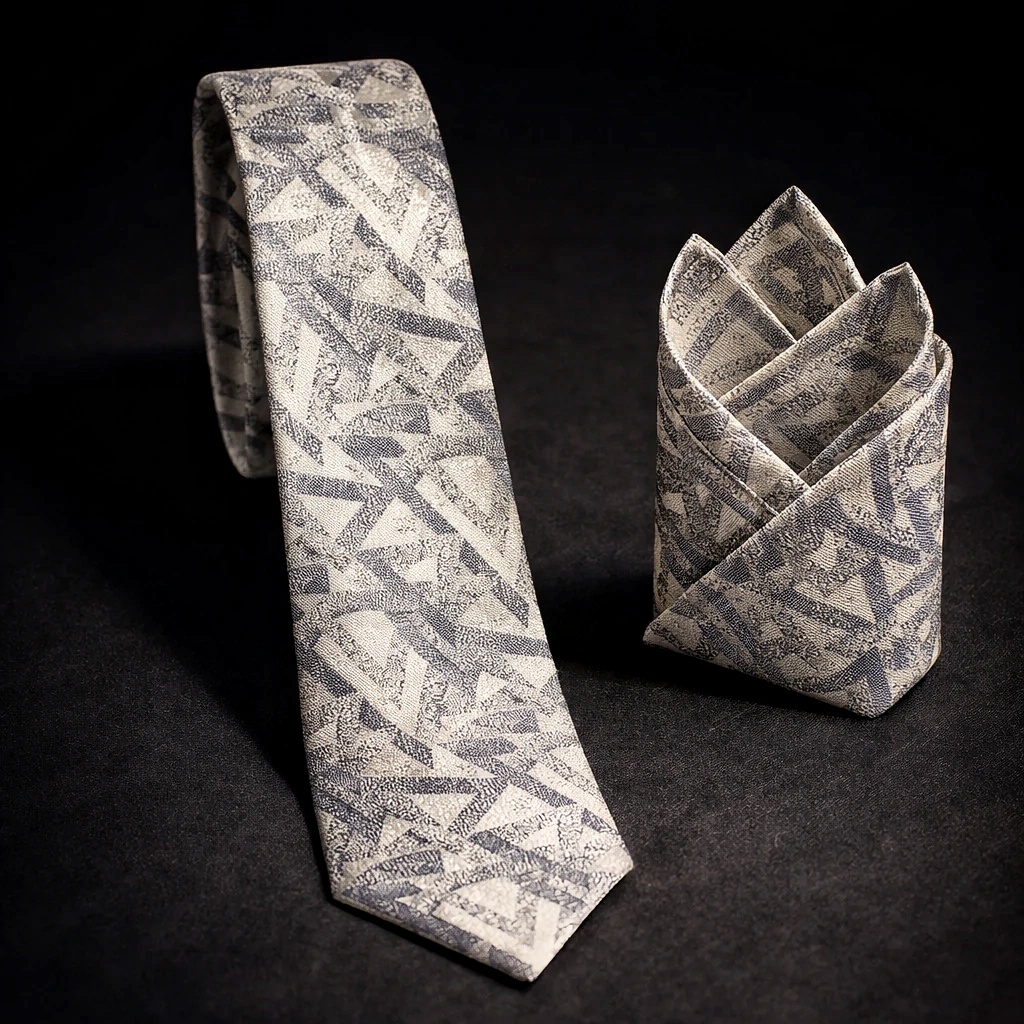 ست کراوات بشک طرحدار رنگ سفید دودی شیک بوته جقه کیفیت بالا