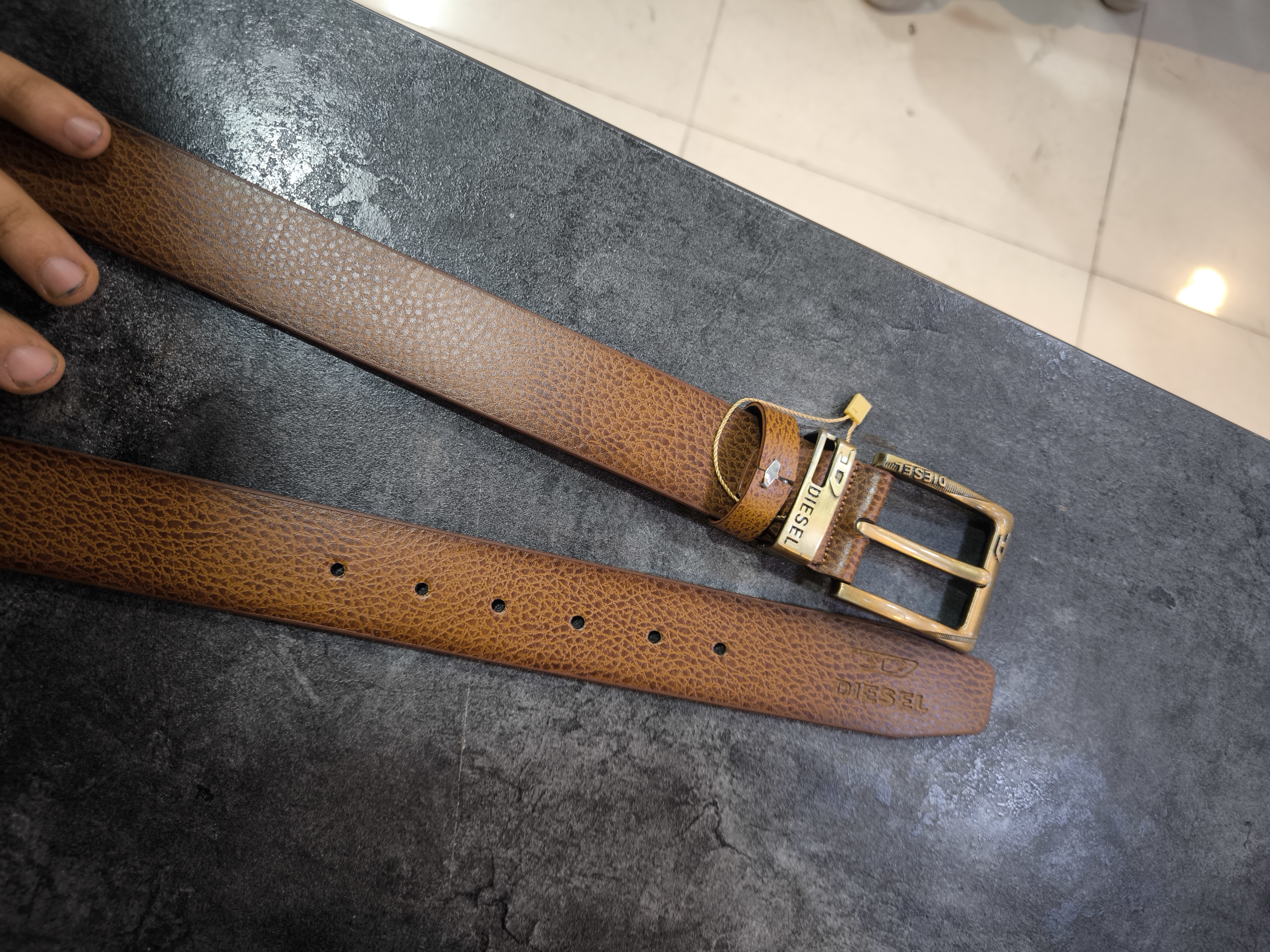 کمربند زبونه دار رنگ عسلی شیک کیفیت بالا طرح چرم
