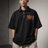 تیشرت نیم زیپ مشکی طرح 1983 | تیشرت پنبه دو نخ دورس مسترکوالیتی با استایل مدرن