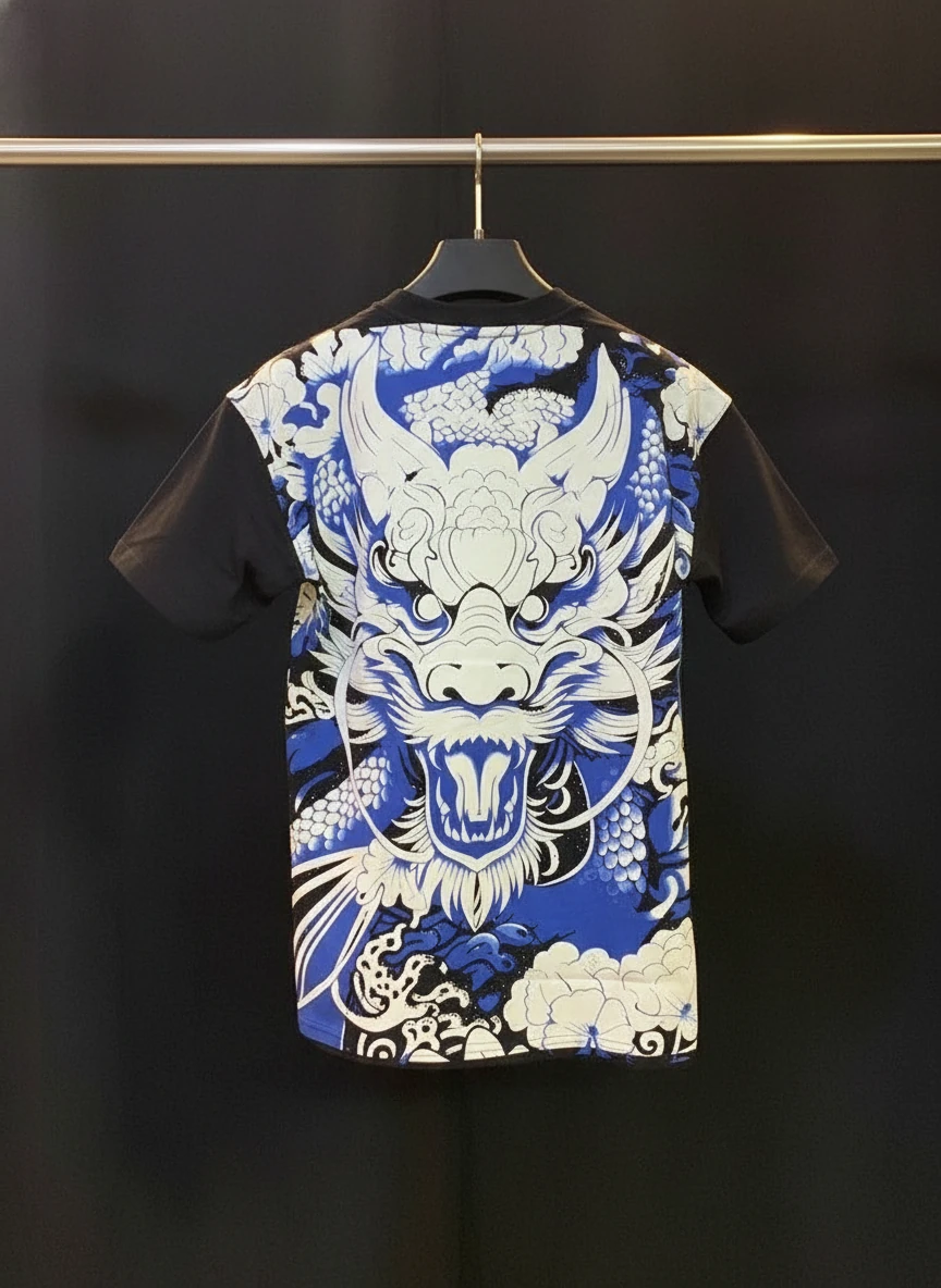 مسترکوالیتی|تیشرت پشت چاپ نگینی پارچه ماکان طرح اژدها فوق العاده خفن و خاص