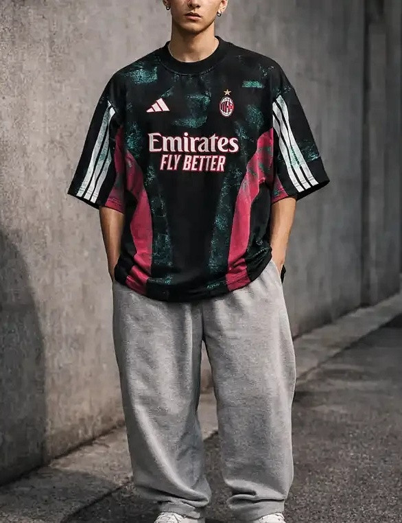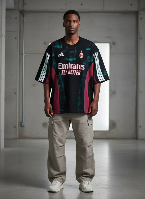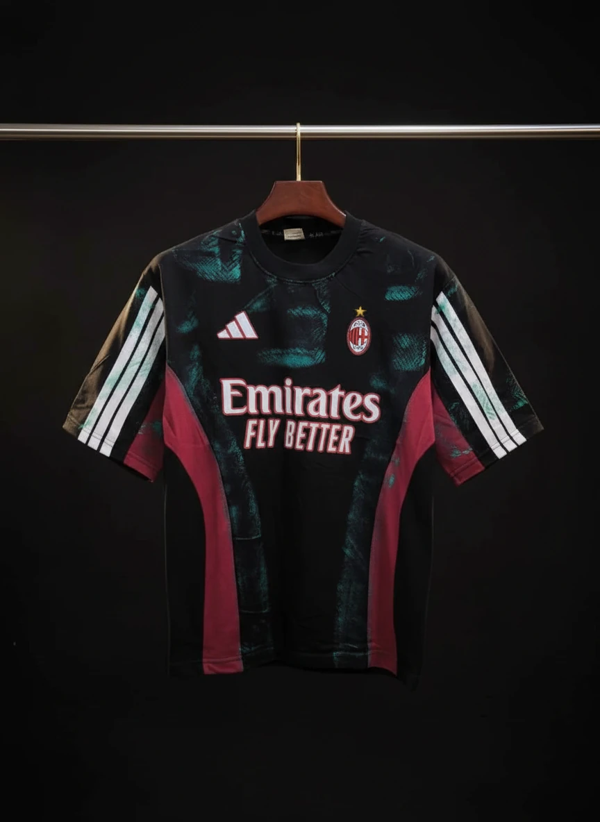 کیت باشگاهی آث میلان مشکی با طراحی هنری انتزاعی رنگ پاشی * پارچه ماکان پنبه گرم بالا