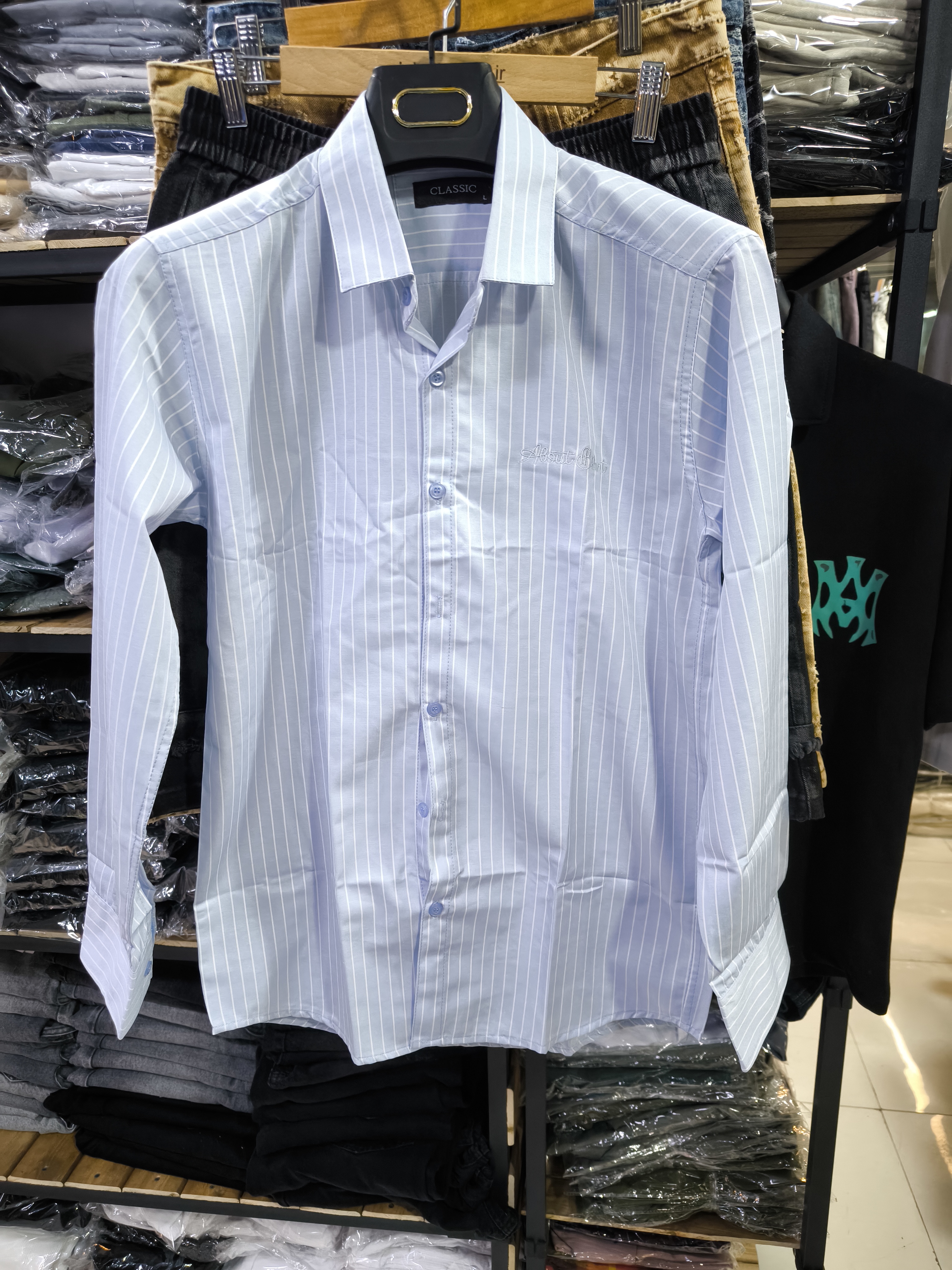 کد AB44 پیراهن مردانه «راه راه آبی آسمانی» – نخ پنبه تابستانه کیفیت پرمیوم