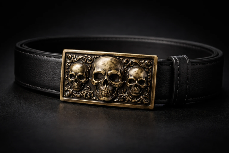 کمربند فانتزی ، کمربند با سگک جمجمه طلایی