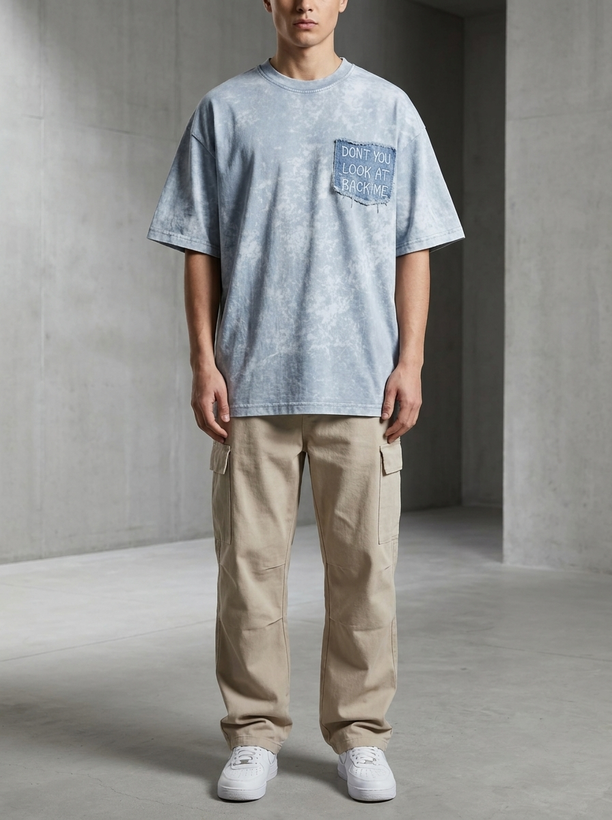 تیشرت سنگشور تک جیب طوسی یخی لش باکسی پارچه ماکان پنبه کد S525