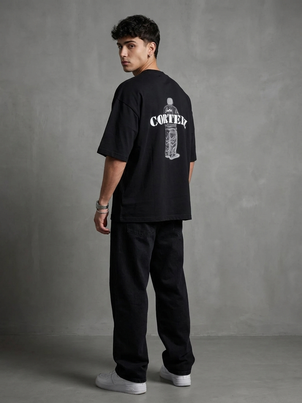 مسترکوالیتی|تیشرت پشت چاپ پارچه ماکان مشکی باکسی لش طرح خفن