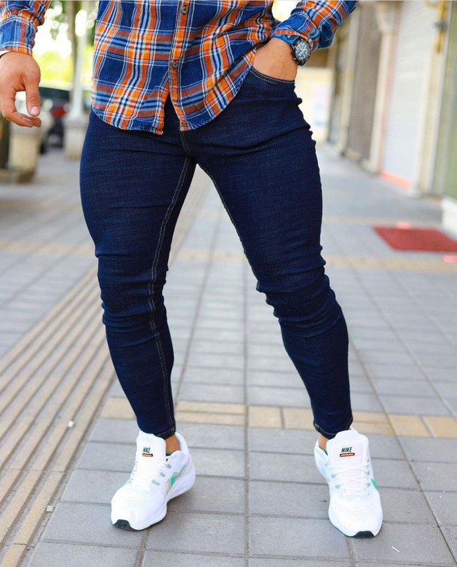 شلوار جین سرمه ای مردانه بدون زاپ کد ۱۴۴