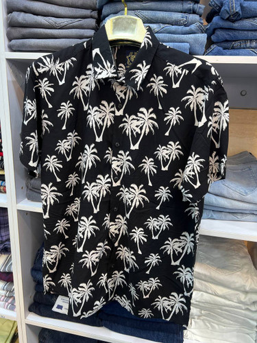 پیراهن هاوایی مشکی مردانه با طرح زیبای درختان استوایی کد427