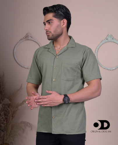 پیراهن لینن مردانه تمام نخ رنگ جذاب وخاص نباتی | استایل اولد مانی کد P04