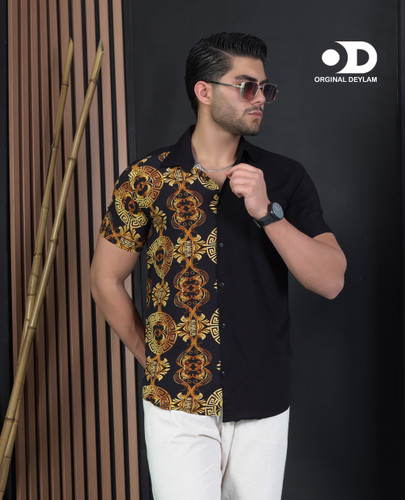 پیراهن هاوایی مشکی طلایی ترکیبی طرح فوق العاده خفن و مدرن| نخ خالص