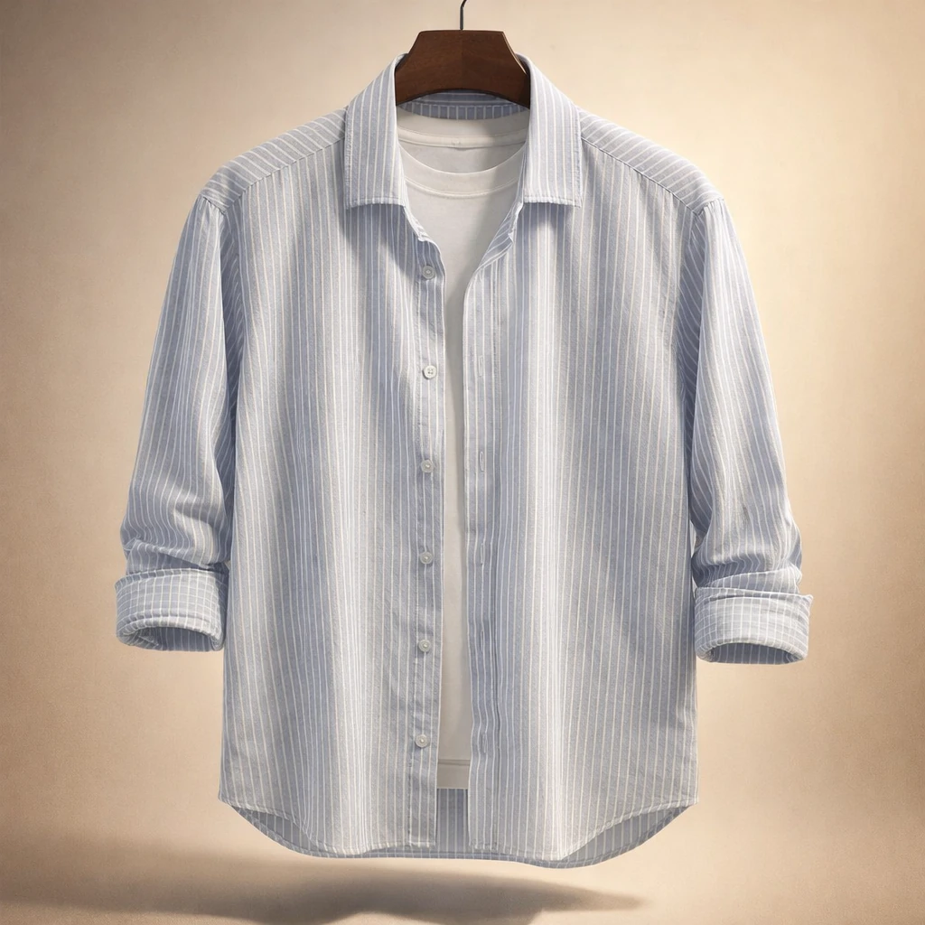 پیراهن مردانه «سپیدآبی» – راهراه پنبه تابستانه پرمیوم