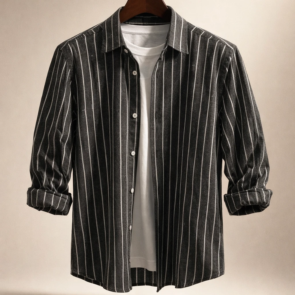 پیراهن مردانه «مشکی راه راه» – پنبهای پرمیوم