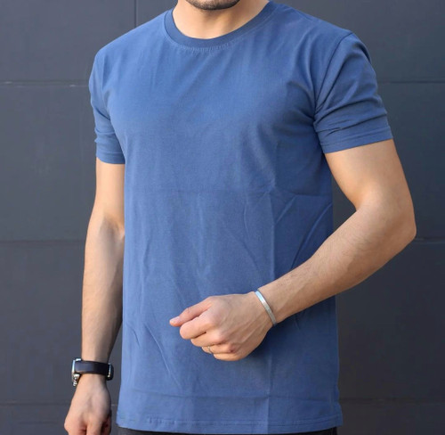 تی شرت مردانه مدل بیسیک نخ پنبه رنگ آبی کاربنی کد 6467