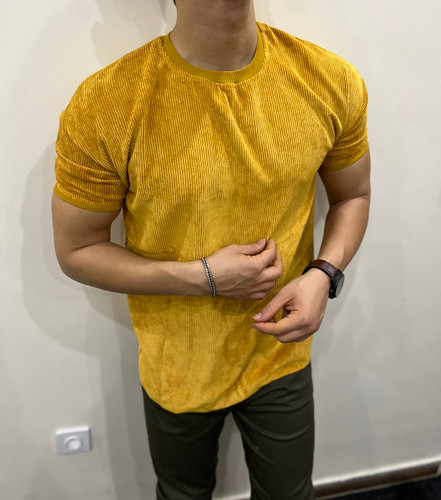 تی شرت کبریتی خردلی جدید با گارانتی کیفیت پارچه و دوخت