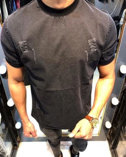 تیشرت مشکی ساده بیسیک مردانه نخ پنبه کد ۱۳