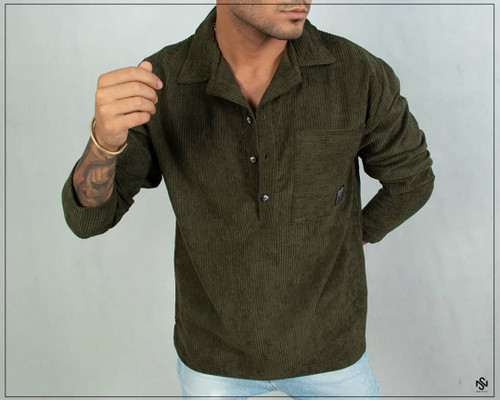 پیراهن سبز ارتشی مخمل کبریتی مردانه کد ۴۳۶