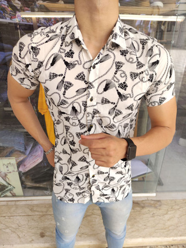 پیراهن هاوایی سفید طرح دار