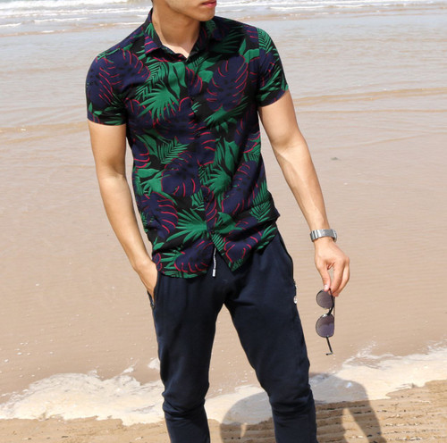 پیراهن هاوایی طرح برگ های استوایی