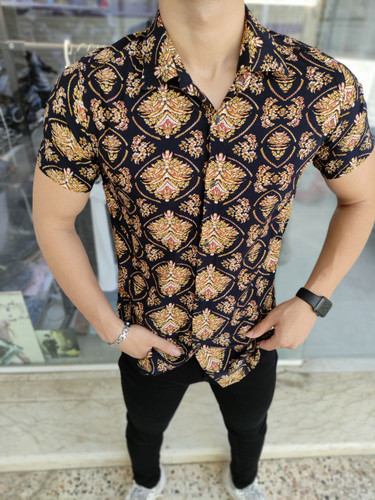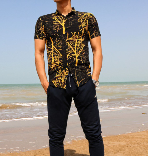 پیراهن هاوایی مشکی طرح خفن و خیره کننده
