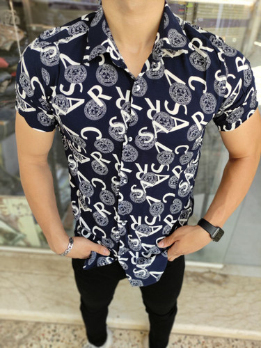 پیراهن هاوایی سرمه ای طرح ورساچه