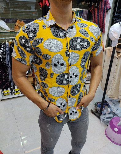 پیراهن هاوایی زرد طرح اسکلت