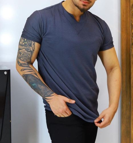 ناموجود تیشرت یقه کوبایی (مراکشی) پارچه بیسکوییتی نوک مدادی با تنخور خفن