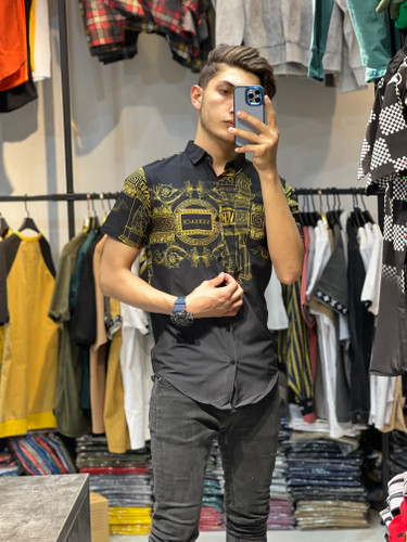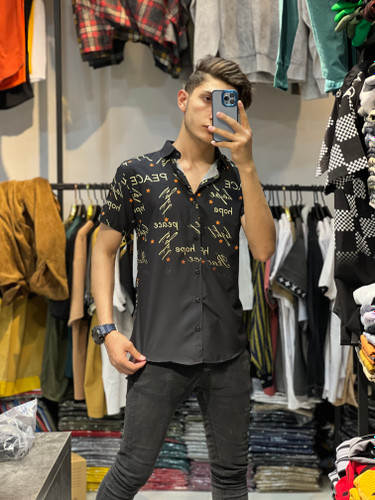پیراهن آستین کوتاه مشکی مردانه کد 564641