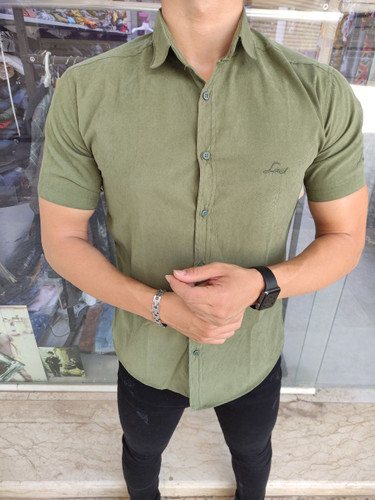 پیراهن پارچه دوشین ساده رنگ سبز مازراتی خاص کد ۱۲۰۷