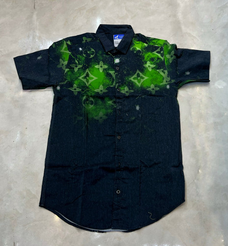پیراهن دنیم سرمه ای و سبز سنگشور