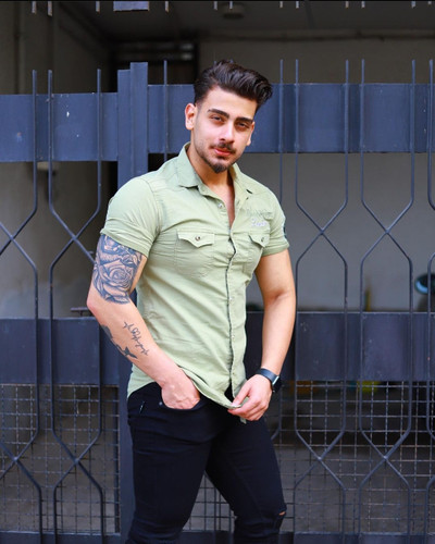 ناموجود پیراهن کتان دوجیب آستین کش سبز خاص
