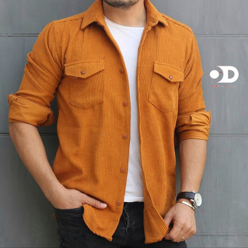 ناموجودپیراهن کبریتی مردانه رنگ زرد خردلی دو جیب - کیفیت A+